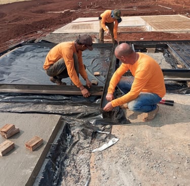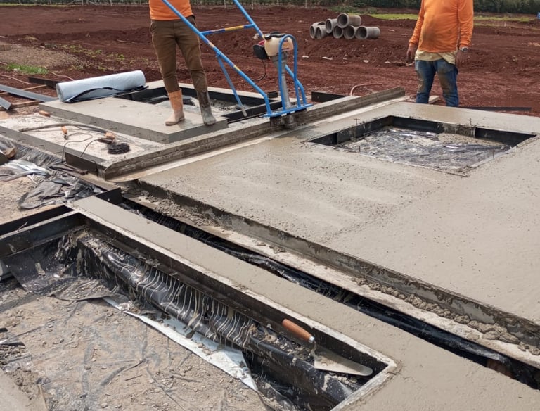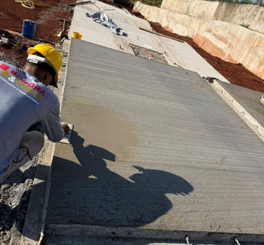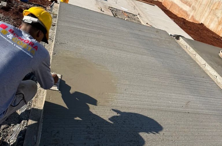 Nivelamento e adesão de superfície horizontais de concretos realizada manualmente.